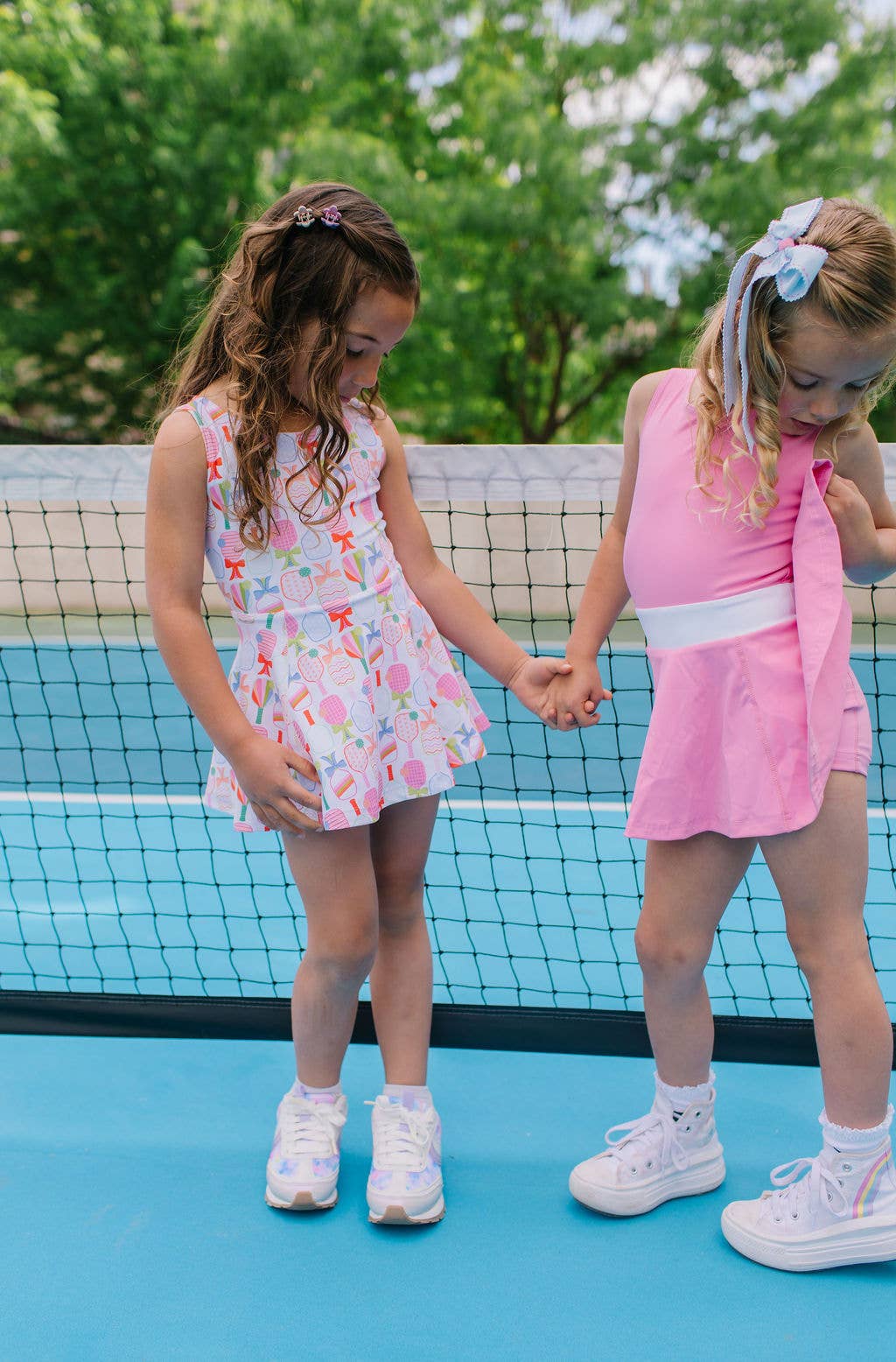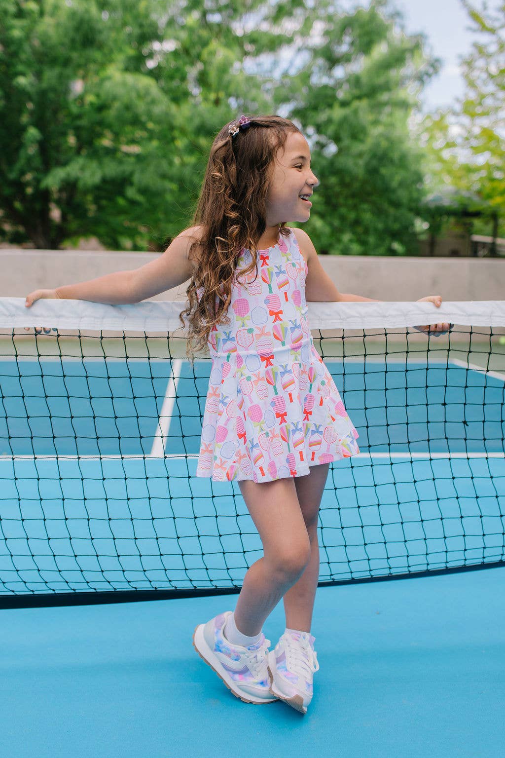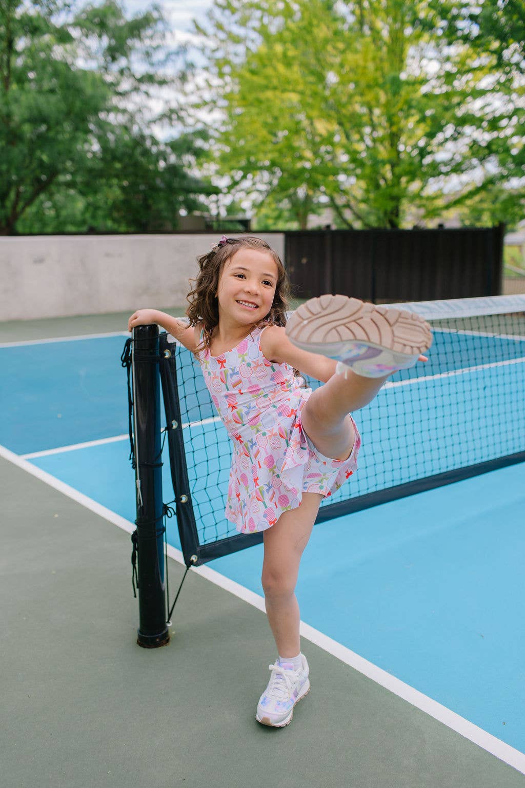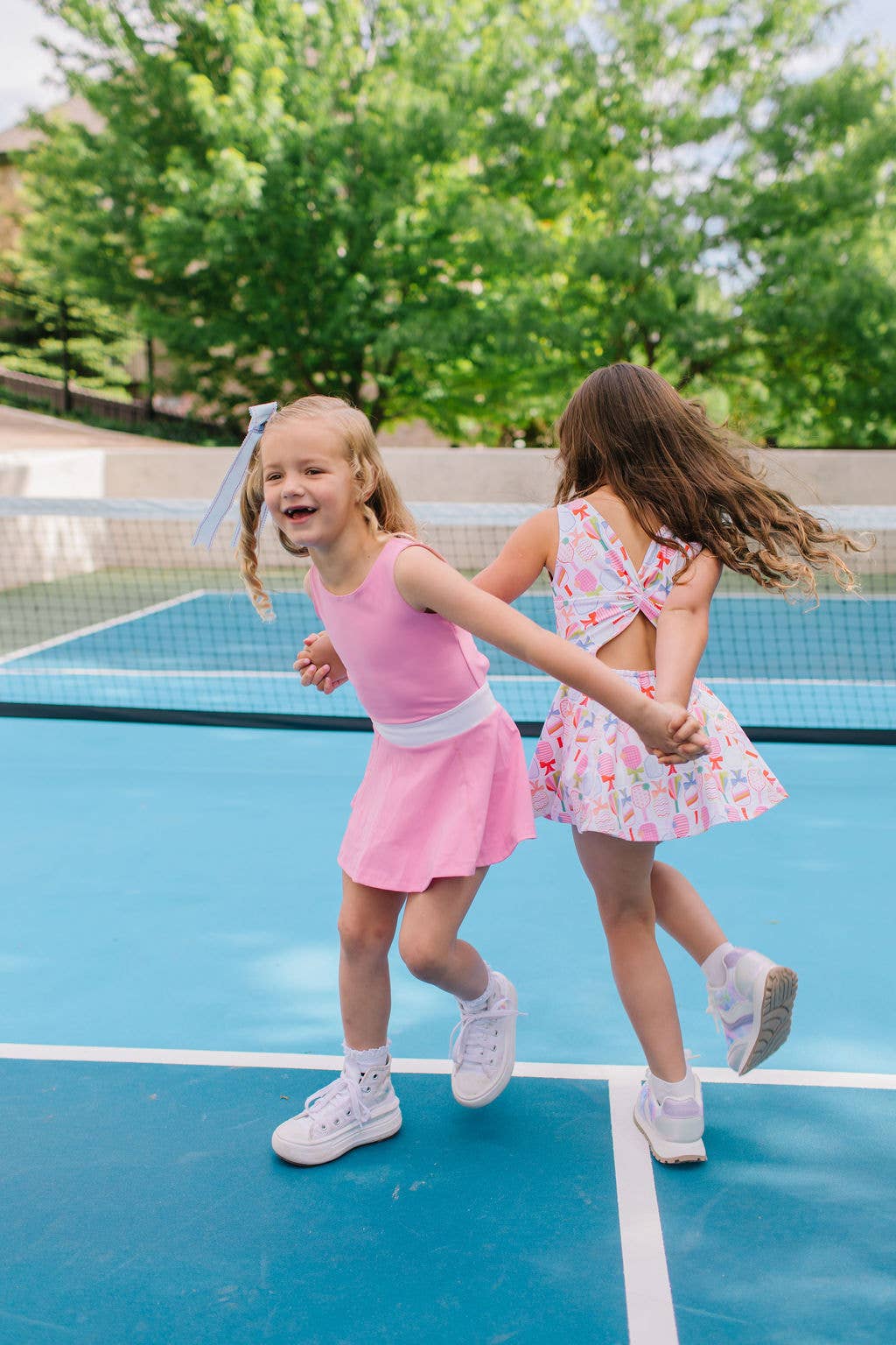 Whether she’s serving looks or chasing the ball, the Caitlin Athletic Dress is designed for active days and sporty style. Made from soft, stretchy jersey fabric, it features a stylish twist-back detail and built-in shorts with pockets for total comfort and confidence while she moves. This all-in-one outfit is perfect for tennis, playdates, or just twirling through the day! Stretchy jersey fabric for easy movement Twist-back design adds a fun, sporty touch Attached shorts with pockets for comfort and convenience Made for play. Built for style.