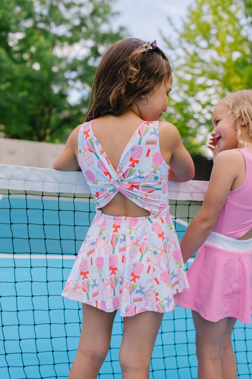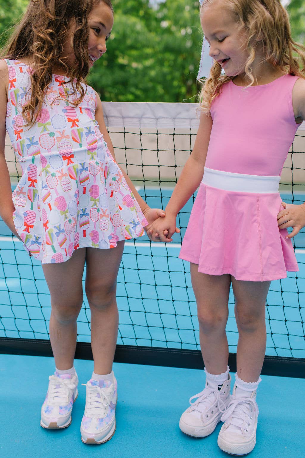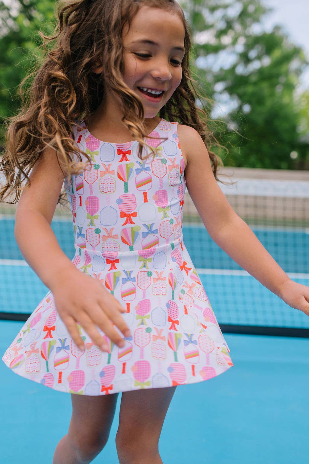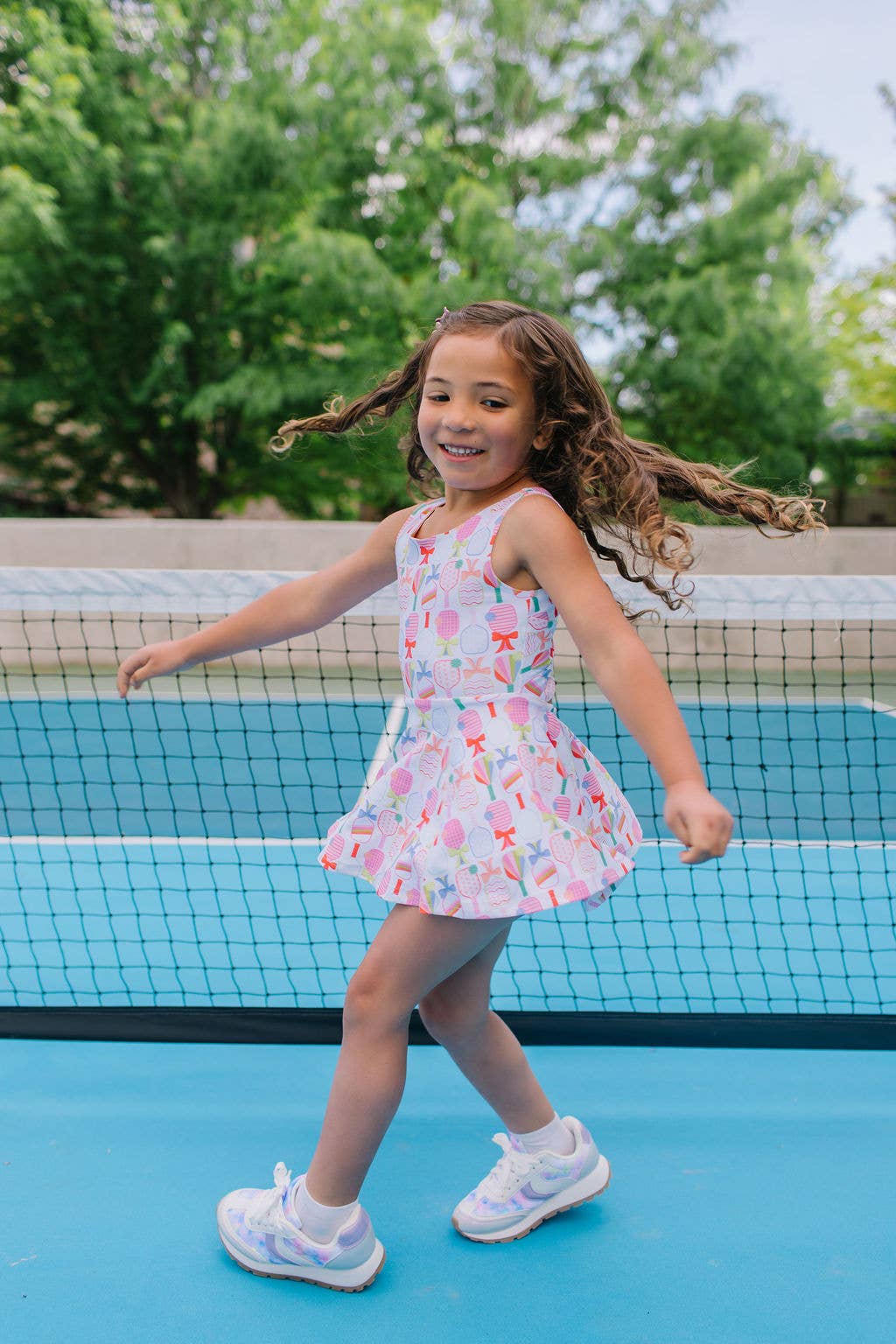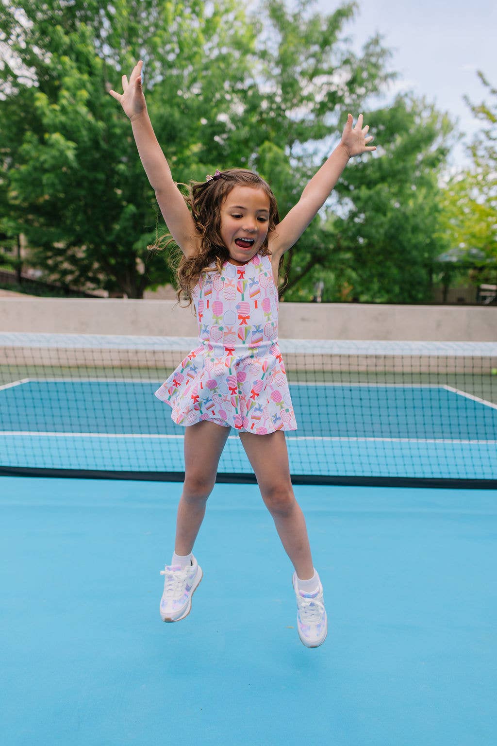 Whether she’s serving looks or chasing the ball, the Caitlin Athletic Dress is designed for active days and sporty style. Made from soft, stretchy jersey fabric, it features a stylish twist-back detail and built-in shorts with pockets for total comfort and confidence while she moves. This all-in-one outfit is perfect for tennis, playdates, or just twirling through the day! Stretchy jersey fabric for easy movement Twist-back design adds a fun, sporty touch Attached shorts with pockets for comfort and convenience Made for play. Built for style.