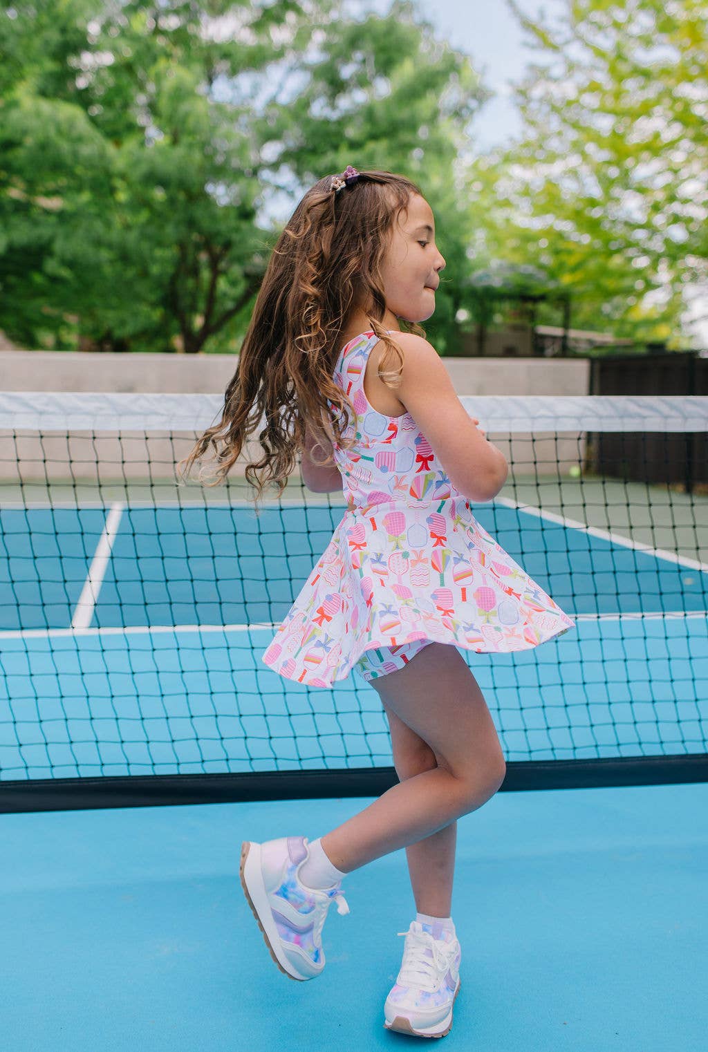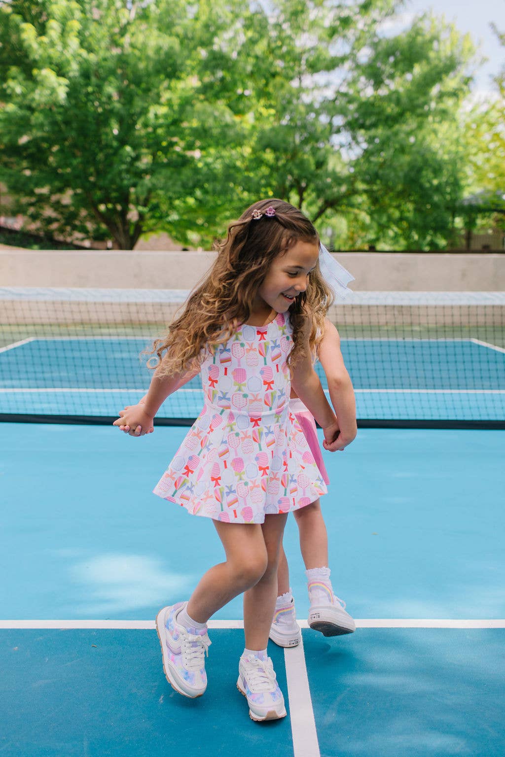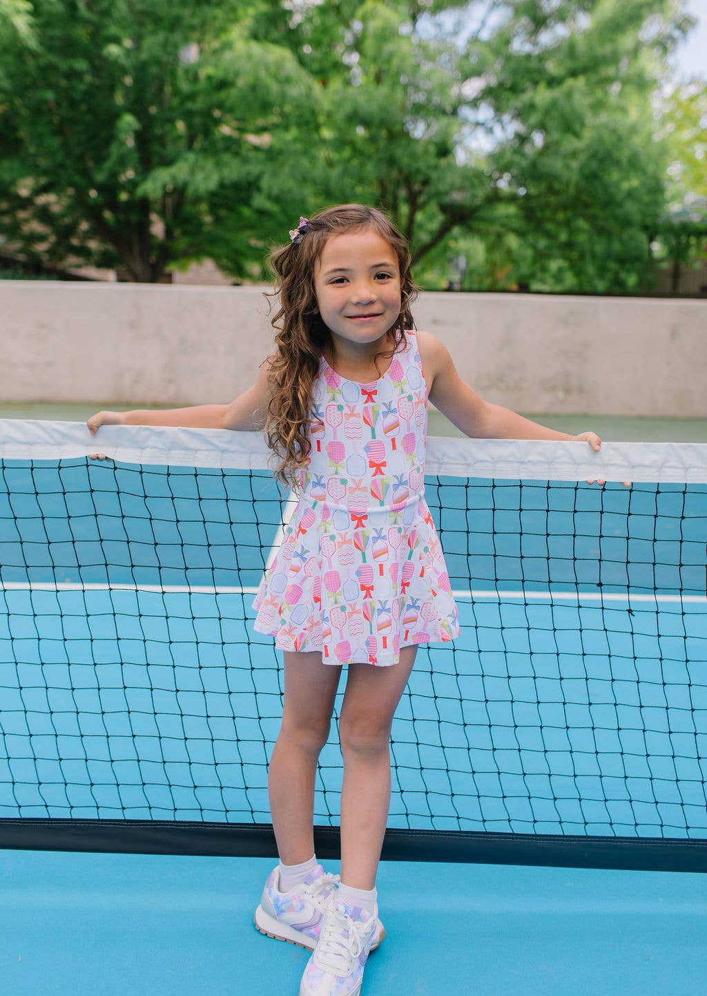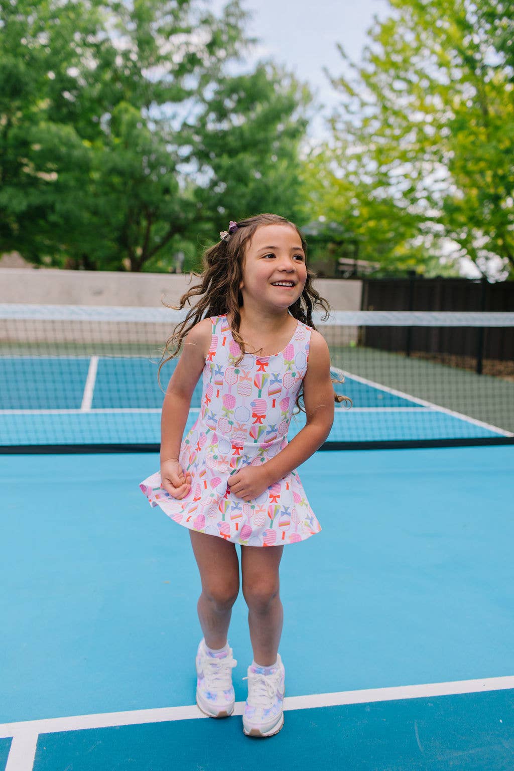Whether she’s serving looks or chasing the ball, the Caitlin Athletic Dress is designed for active days and sporty style. Made from soft, stretchy jersey fabric, it features a stylish twist-back detail and built-in shorts with pockets for total comfort and confidence while she moves. This all-in-one outfit is perfect for tennis, playdates, or just twirling through the day! Stretchy jersey fabric for easy movement Twist-back design adds a fun, sporty touch Attached shorts with pockets for comfort and convenience Made for play. Built for style.