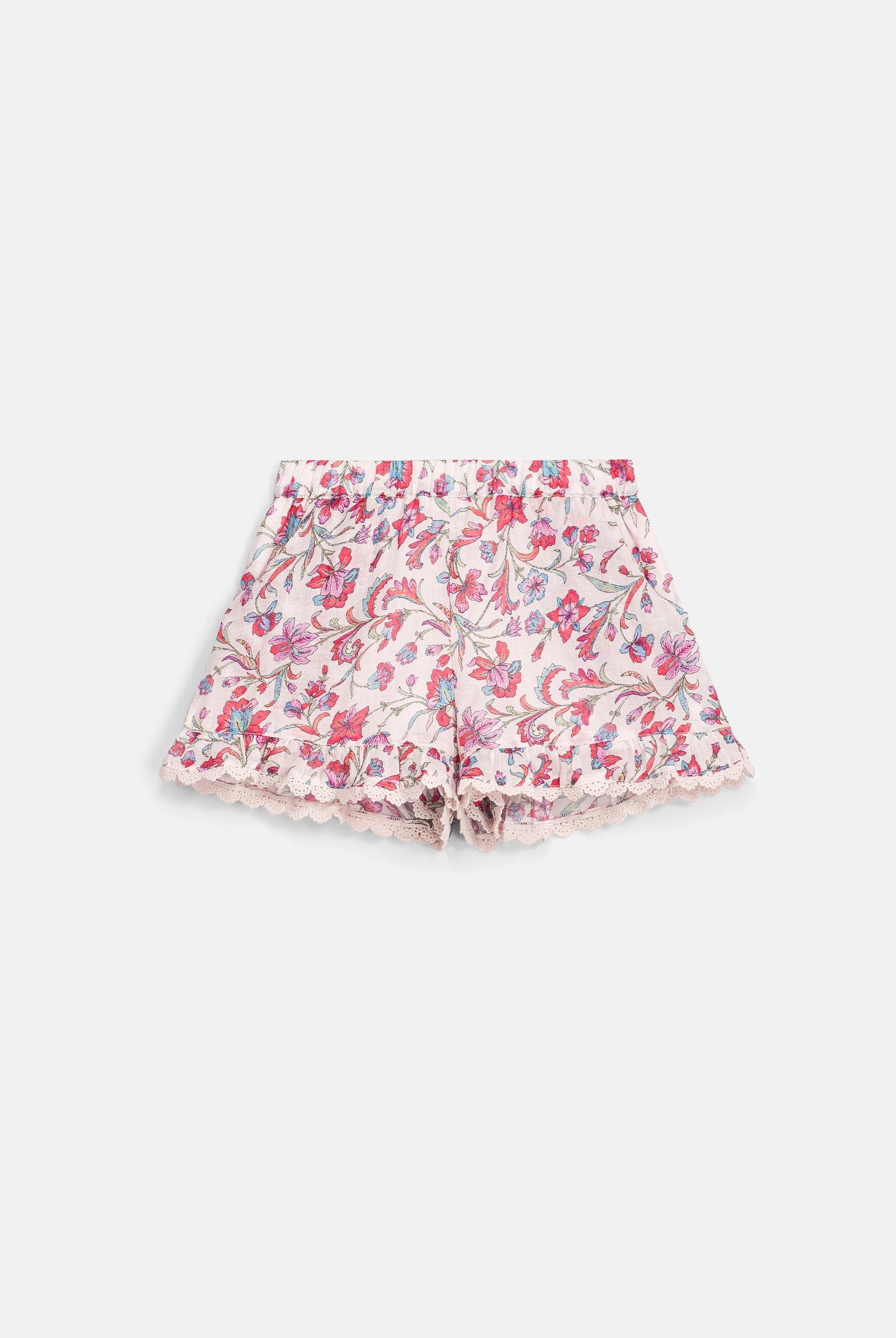 Charming floral shorts bursting with thoughtful touches! These girls' favorites boast an elastic waistband that moves with them, pretty lace accents at the hem, and a complete lining for comfort. Made from 100% organic cotton by Marie Pidancet's creative collective, they're perfect for playtime while keeping things gentle on growing skin.