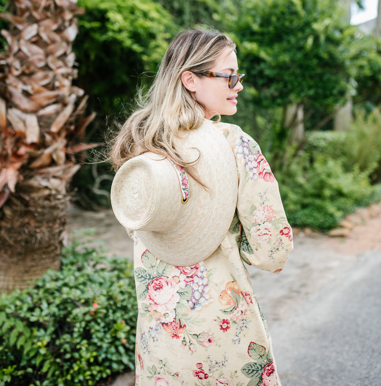 This retro-style hat (that fits big and bucket-y) is made from biodegradable palm tree leaves. And features a brass grommet on each side, so you can easily interchange ribbons or even silk scarves (you may already own)!