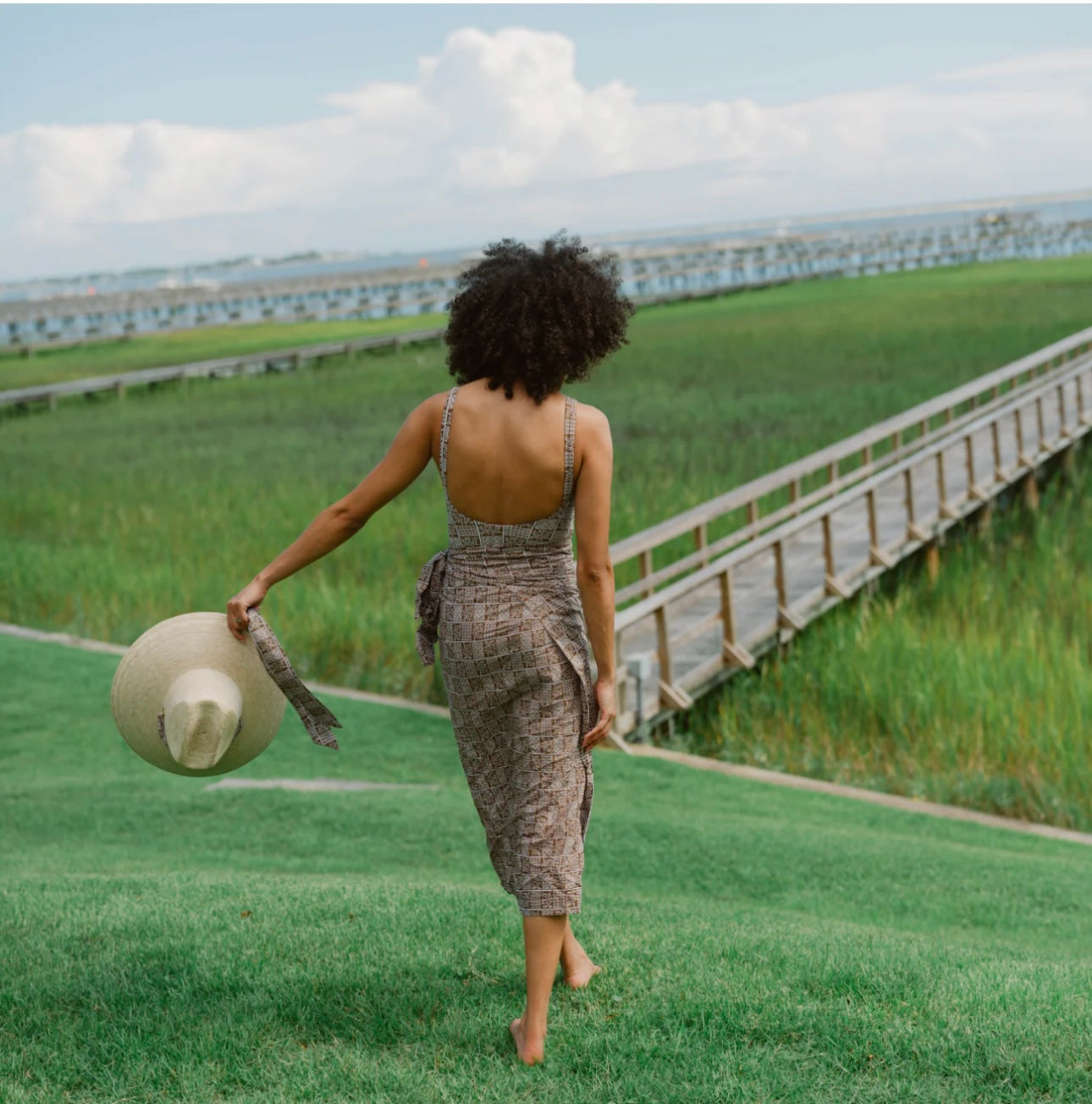 This sun hat ships woven with a block print hat scarf.