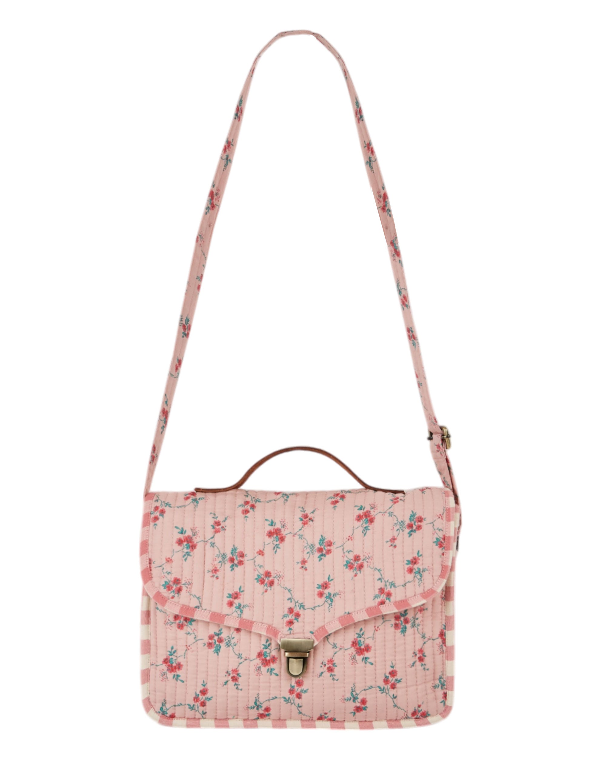 Elevate your outfit with this charming Floral Quilted Bag in playful pink. Crafted from quilted cotton adorned with delicate floral bouquets set against a soft pink background, it radiates cheerful elegance. The bag features a flap closure secured by a shiny metal buckle, keeping your essentials safe while adding a touch of vintage charm. An adjustable shoulder strap ensures a comfortable fit for every adventure, and the riveted leather handle offers an alternative carrying option with rustic flair. Inside, a pink and off-white gingham cotton lining adds a whimsical surprise to your everyday style. Perfectly sized at 28 x 18.5 x 6.5 cm, this bag easily holds your must-haves while brightening up your day.