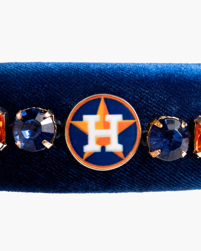 Bring the bling to the ballpark with our Houston Astros Jeweled Headband! Designed for fans of all ages, this plush blue velvet headband is loaded with all-star shine, featuring gem details and emblem charms showcasing the Houston Astros iconic team logo. Whether you're at the stadium or bringing team spirit to your everyday style, this accessory is a must-have for every Astros fan.