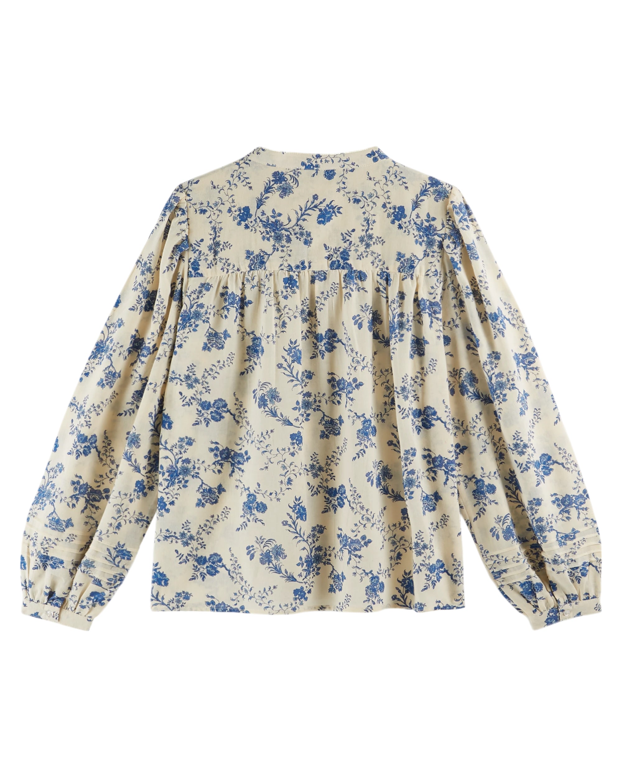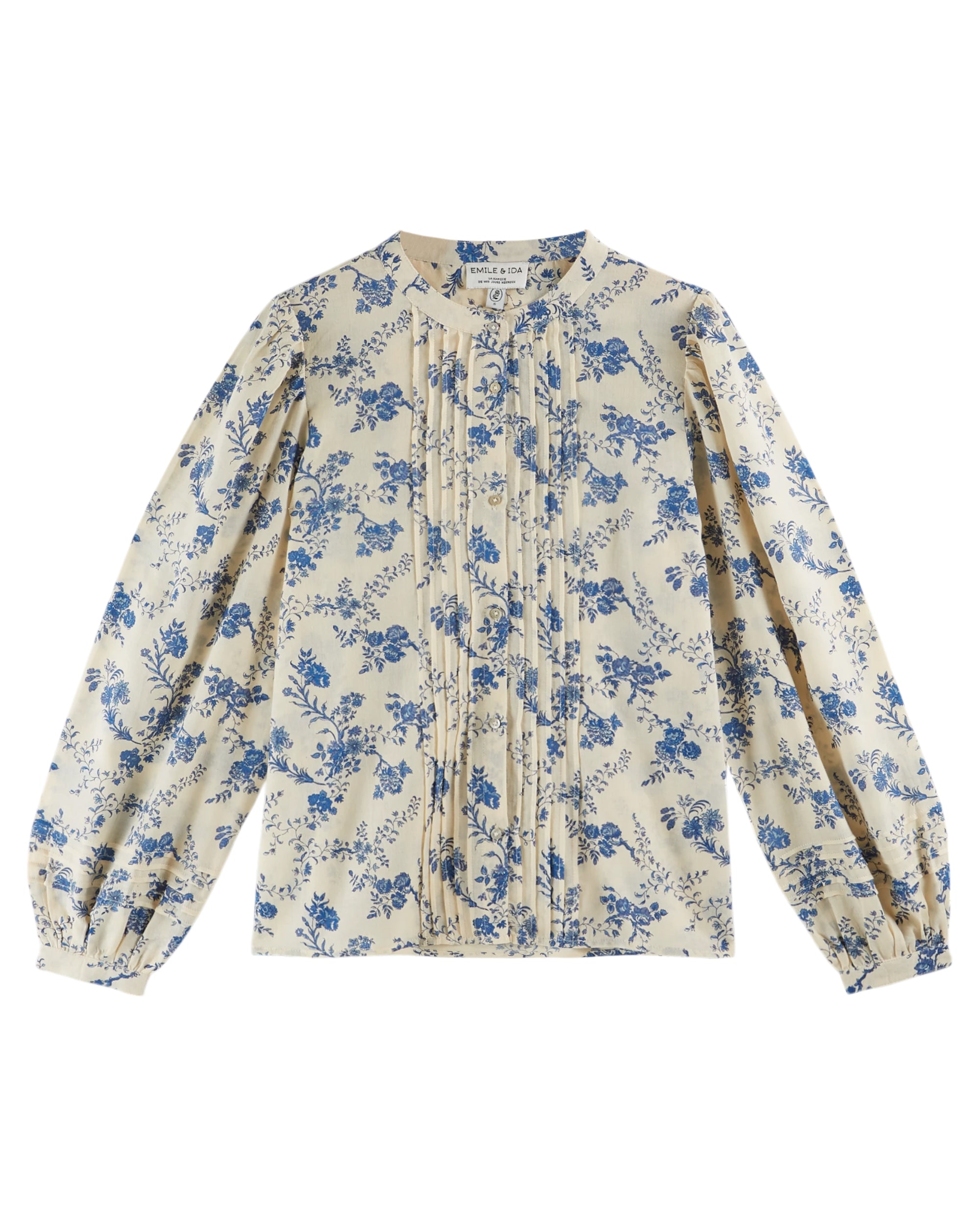 The Orchid Bleu Blouse in ecru combines timeless sophistication with delicate artistry. Crafted from high-quality off-white cotton, it features an elegant pattern of blue flowers subtly set against a matching background. The blouse’s slightly flared cut enhances the silhouette with graceful movement, while precisely tailored front pleats add refined texture. A full-length buttoned opening and neatly buttoned cuffs complete the design, offering both functionality and polished detail. This blouse is a versatile choice for those seeking understated elegance in their wardrobe essentials.